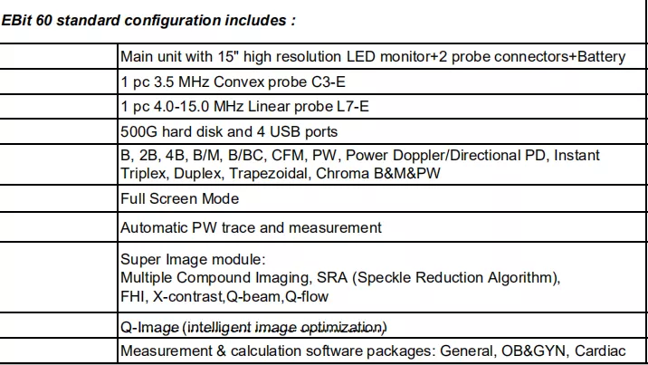 1.Chison ebit60 ultrason paketi: standart paket2. seçenek için tablet