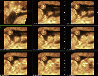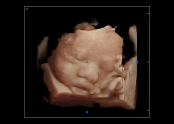 Fetal Yüzün 4 Boyutlu Gerçekçi Görünümü.Önceden tasarlanmış farklı ön ayarlar ve işlevlerle 4D'de fetal taramanın görüntülerini geliştirir.