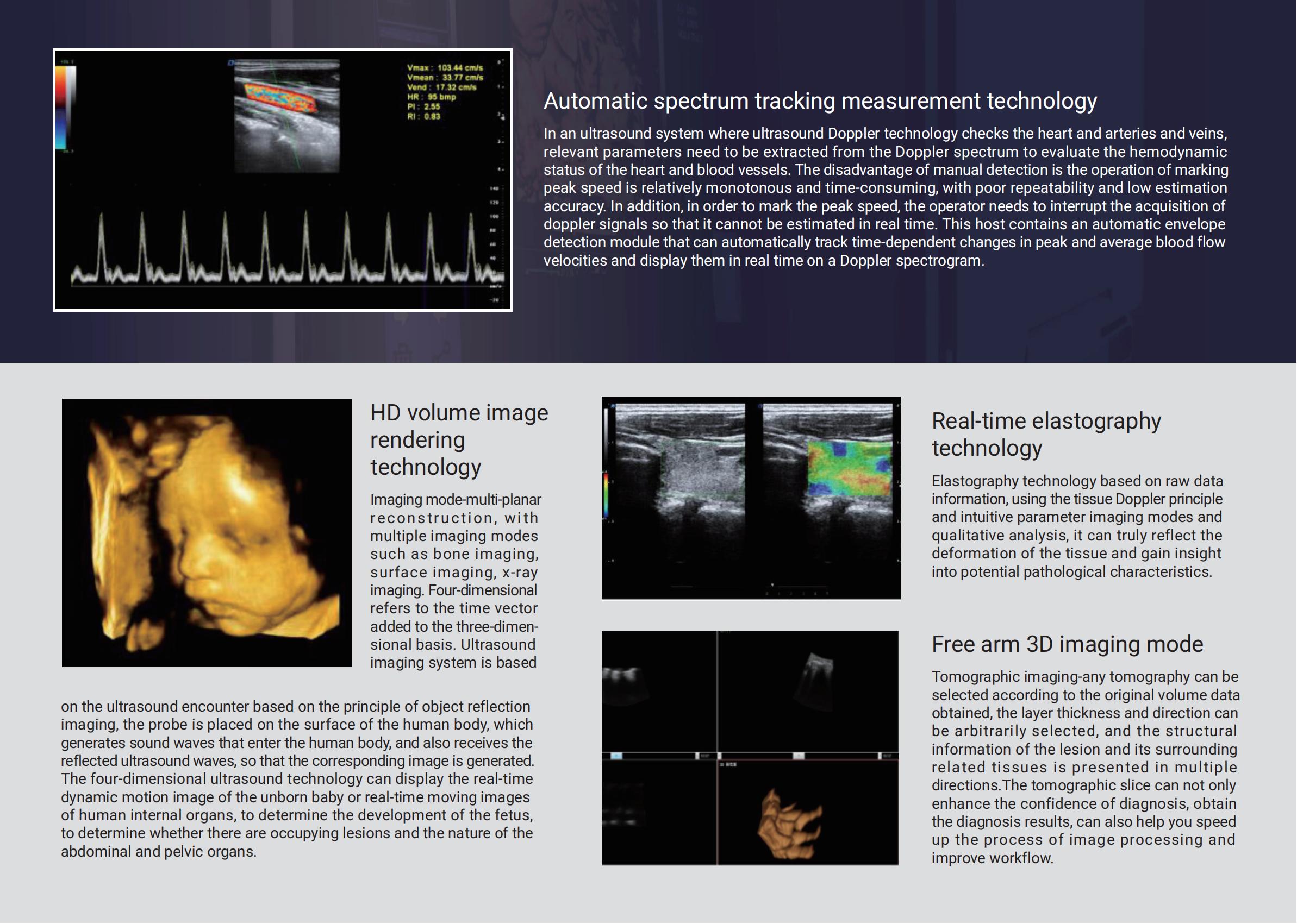 PS:The screen has real-time display of voice power, probe frequency, dynamic range, pseudo color, gray scale and other 11 parameters can be adjusted