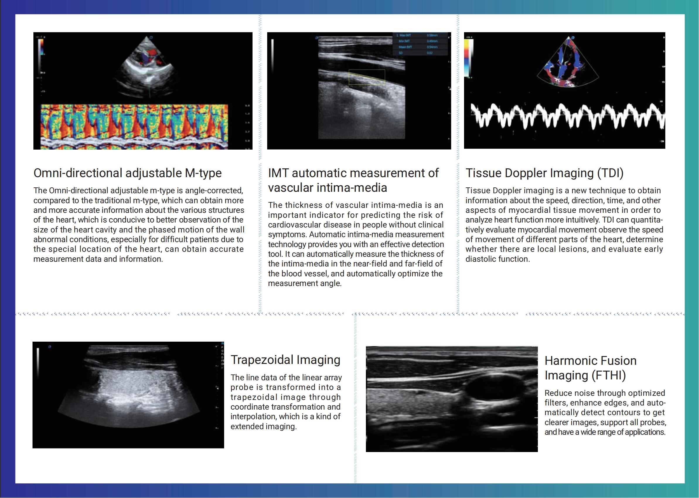 Abdominal,OB,GYN,Cardiac,Urinary,Small Parts,Superficial, Vascular, Pediatrics, Advanced measurement software