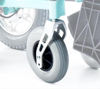 Mae olwyn gyffredinol sy'n gwrthsefyll traul a dyluniad datgywasgiad dwyn yn gwneud y gadair olwyn yn anwastad.Mae hyn yn ei gwneud hi'n haws i ddefnyddwyr deithio.