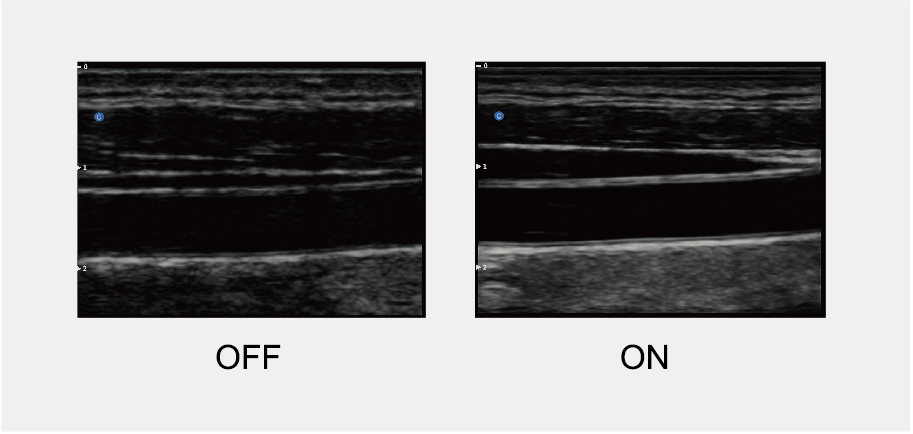 ●Elastography displays tissue stiffness in real time to provide doctors with additional diagnostic information when scanning organs like liver and breast.