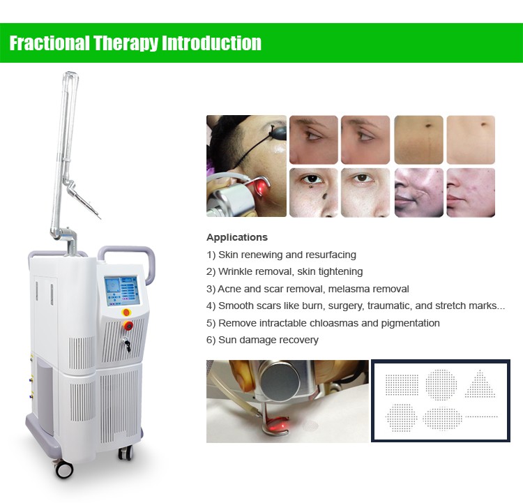 1. Glatki ožiljci kao što su kirurški ožiljci, opečeni ožiljci, ožiljci od akni itd.2.Obnavljanje i regeneracija kože, oporavak od oštećenja od sunca3.Uklanjanje bora i zatezanje kože4.Uklanjanje pigmentacije kao što su kloazme koje se ne mogu riješiti, staračke pjege, mrlje, točkice itd.5.Izrasline na koži poput bradavica, itd.6.Liječenje akni7.Vaginalni tretman: zatezanje rodnice, izbjeljivanje rodnice, vrinska inkontinencija.