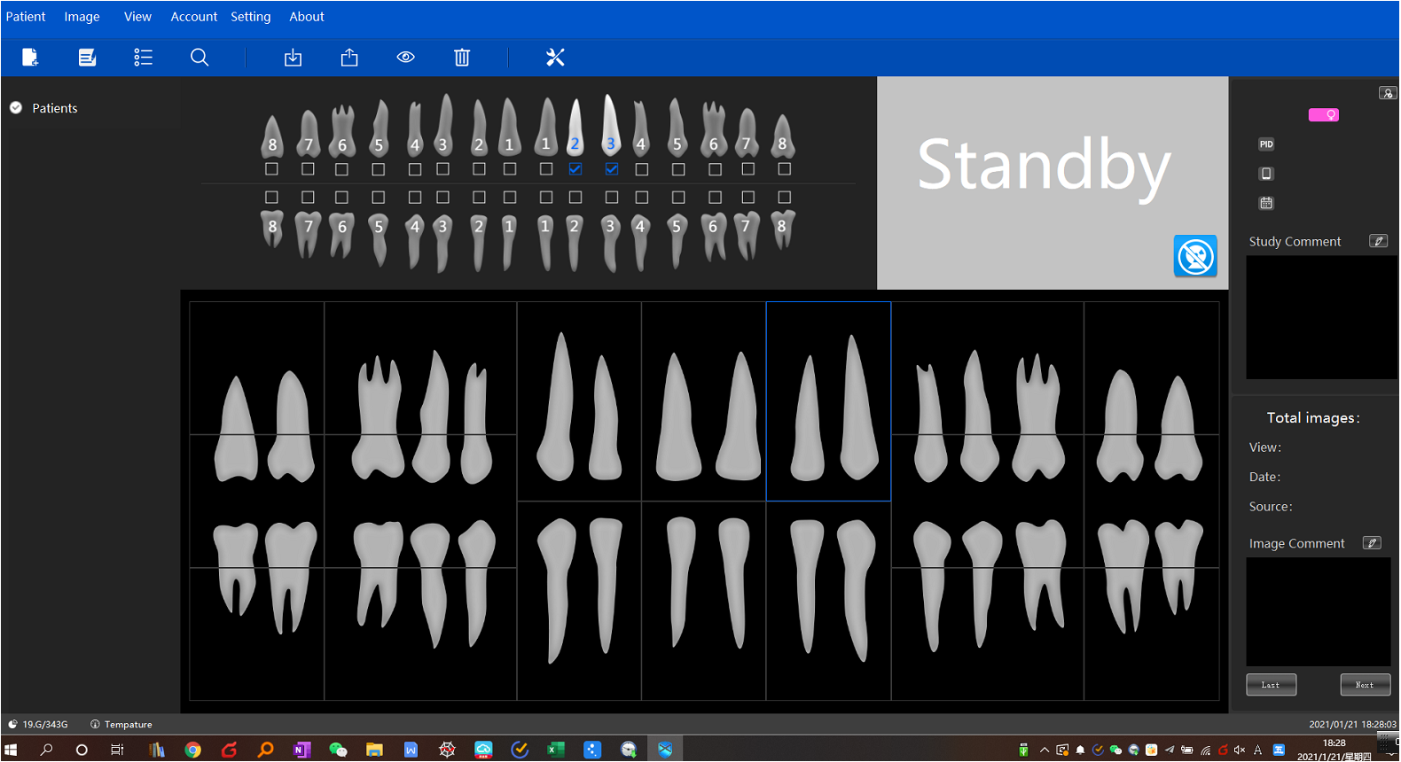Sistem pencitraan x-ray gigi digital terdiri dari sensor, pengontrol gambar, sistem pengambilan gambar dan kabel koneksi (USB