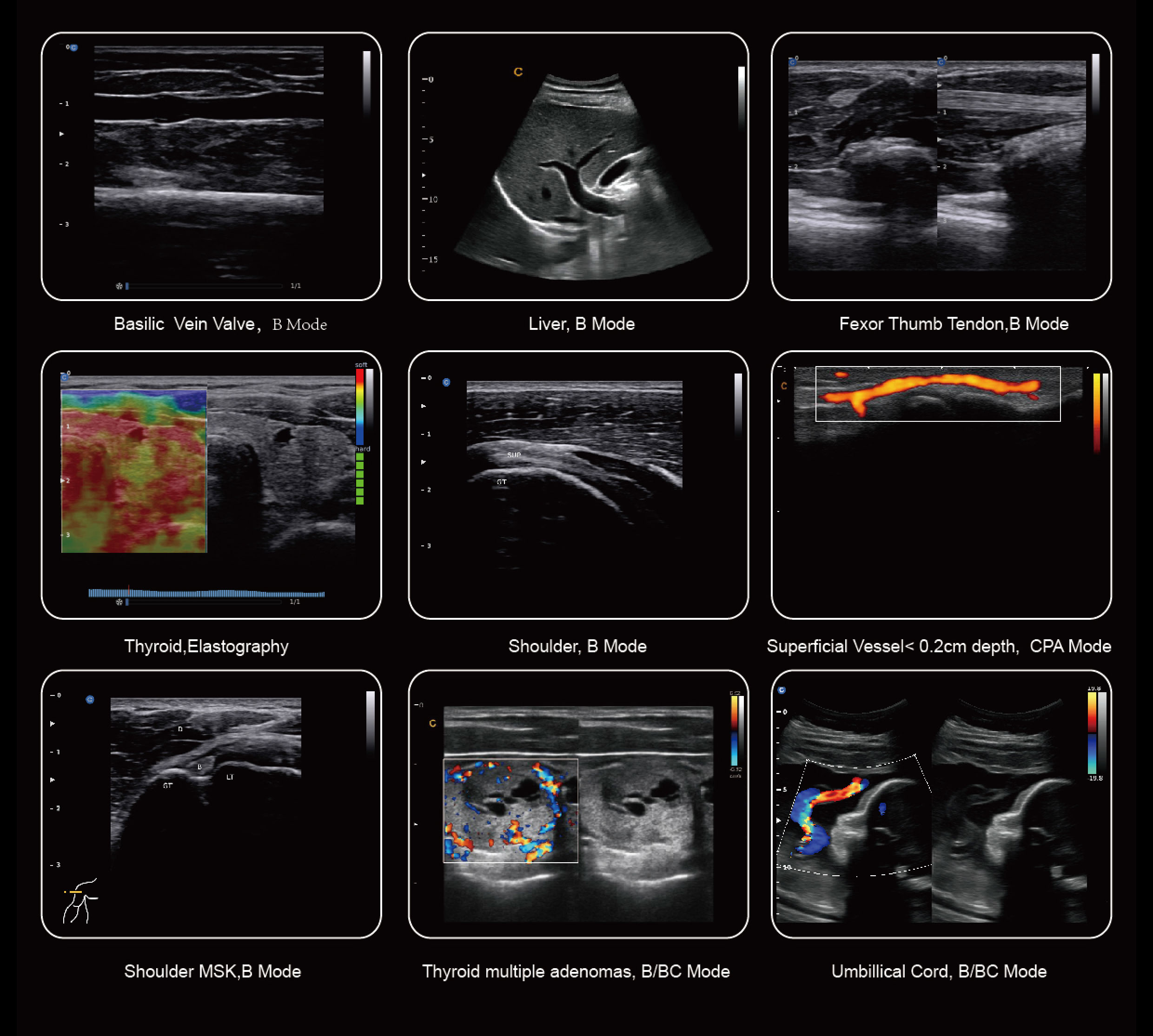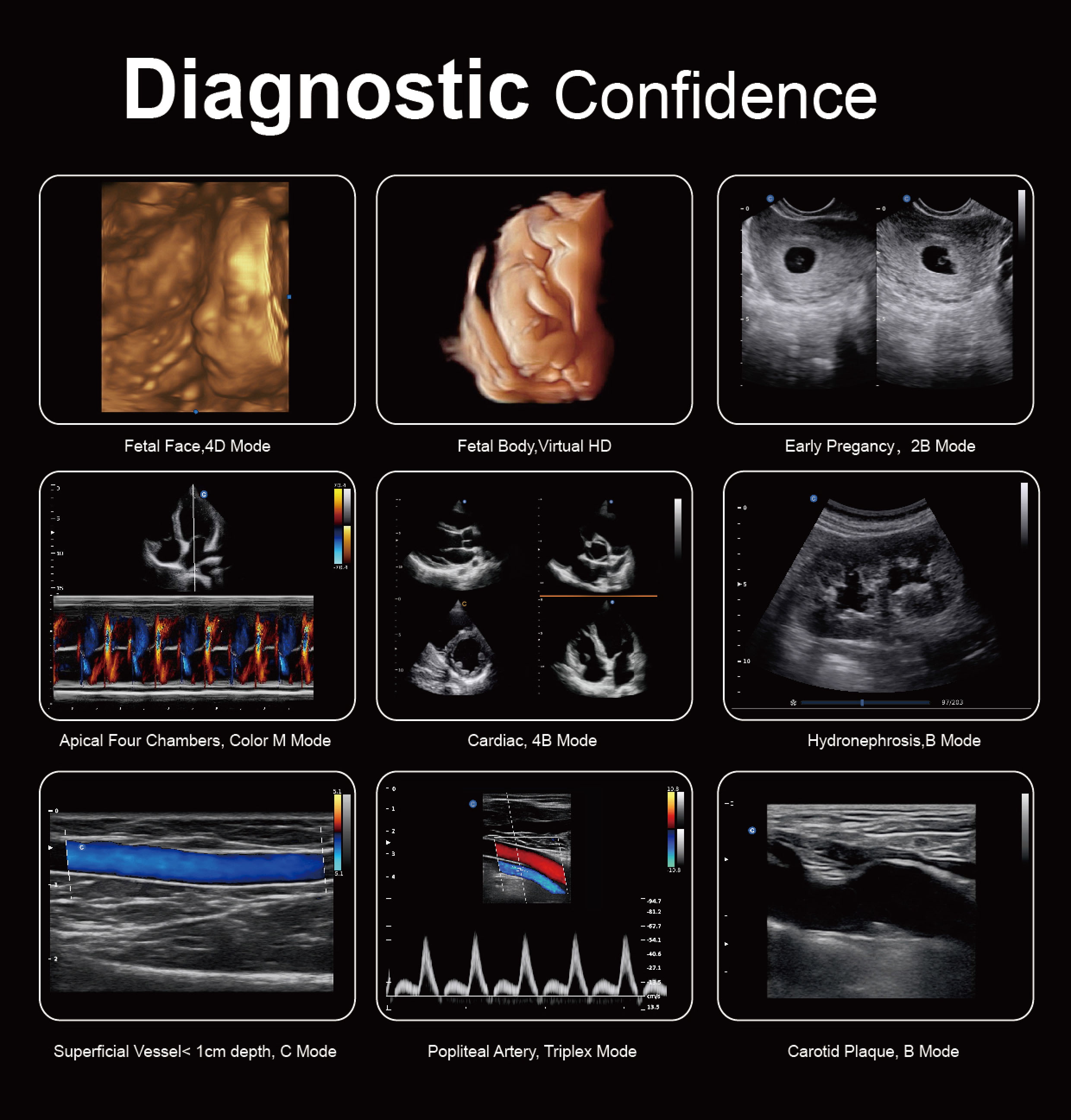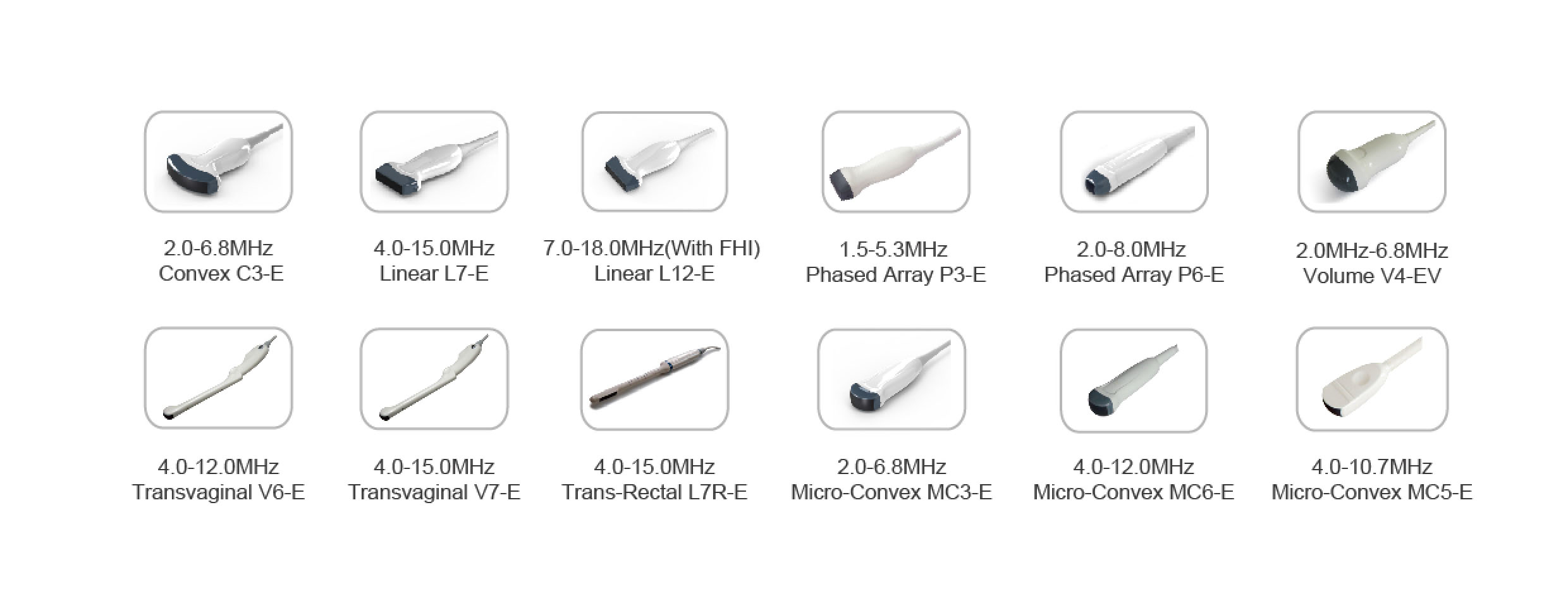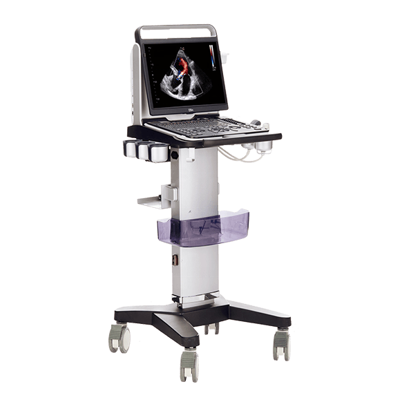 ●Ergonomic trolley (accessory box, printer socket & probe holders, optional: theft-proof lock)
