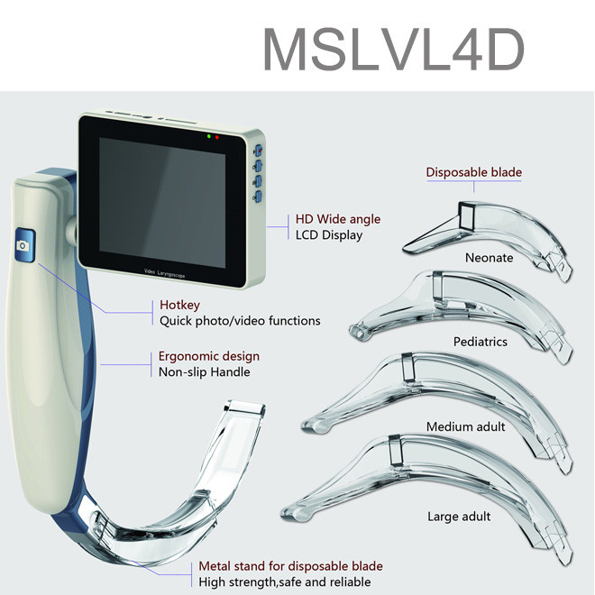 Funkcijas: Pilnībā pārnēsājams video laringoskops, 180g pretsvīšanas Var savienot ar lielāku monitoru un datoru Reāllaikā uzņemt fotoattēlus un video Vienreizējās lietošanas plastmasas MAC 2,MAC3,MAC4 asmens Piemērots lielam pieaugušajam, Vidējam pieaugušajam, bērnam, parasti elpceļiem.