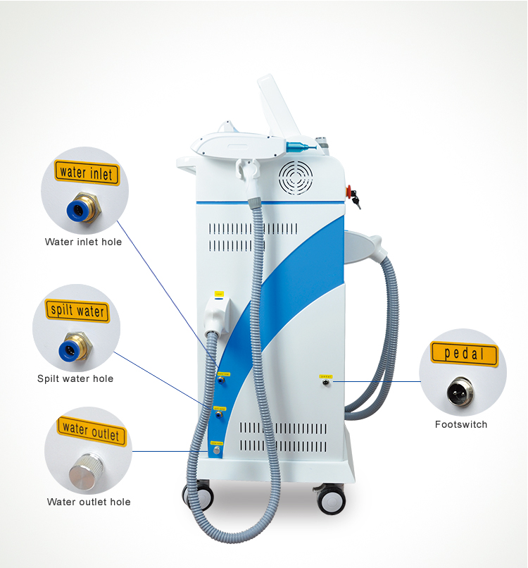 OPT (Optimal Pulsed Technology) IPL tehnoloģijas ārstēšanas teorija ir tāda, ka: intensīva impulsa gaisma rada gaismas un siltuma efektu un fotoķīmisko efektu uz ādas, dziļā kolagēna un elastīgās šķiedras āda pārkārto un atjauno ādas elastību, vienlaikus uzlabojot asinsvadu audu funkcijas, novērš sejas ādas grumbas un samazina poru saraušanos;papildu, intensīva impulsa gaisma var iekļūt arī ādā, to galvenokārt absorbē pigmentu grupa un asinsvadu audu selektivitāte; neiznīcinot normālu ādu, tiek iznīcināta asins koagulācija, pigmentu grupa un pigmenta šūnas, sadaloties, lai panāktu pigmentācijas terapeitisko efektu. .1. IPL+OPT+NDYAG lāzers+ RF vienā2.Divi operāciju ekrāni nozīmē, ka jūs varat veikt matu noņemšanas un tetovējumu noņemšanas procedūru vienlaikus divām personām, efektīvāk.3.Daudzfunkcionāla OPT lāzera iekārta, izmantojot jaunākās optiskās tehnoloģijas, apvienojumā ar OPT skaistumkopšanas sistēmām, RF skaistumkopšanas sistēmām un ND Yag lāzerterapijas sistēmu.