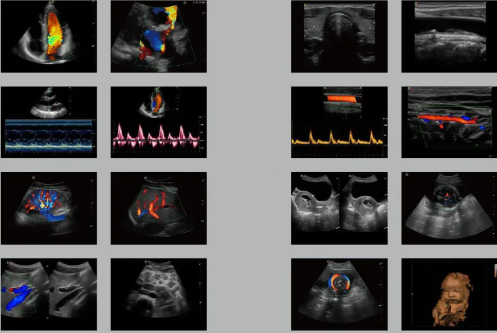 Operasyon modu | B, Dual B, Quad B, THI, Trapezoid Görüntüleme, Gerçek Zamanlı Panoramik Görüntüleme (B modu ve Renkli modu)M, Renkli M, Anatomik MStress EchoColor Doppler(akış hızını hesaplayabilir), Power Doppler Görüntüleme, Yönlü PDI, TDIPW HPRF, CWDual-LiveDuplex: B ve Doppler/M ile, yeni ön ayarda tanımlanabilirTriplex: B, Color Flow ve PW/CW Doppler, yeni ön ayarda tanımlanabilir3D Görüntüleme4D GörüntülemeKontrast GörüntülemeC-xlasto(elastografi görüntüleme) |